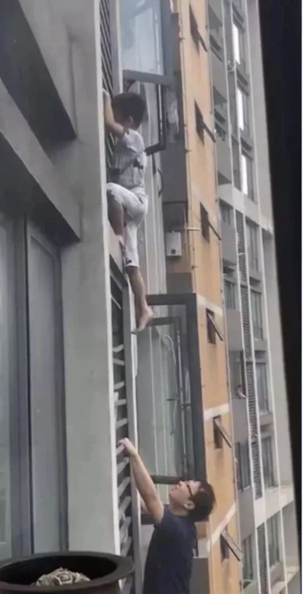 8月15日下午,广东佛山一小区发生惊险一幕!一名独自在家、年仅七岁半的小朋友以为有“坏人”进屋,竟然从八楼房间的窗户爬下逃生!
