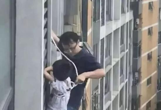 大约过了三四分钟左右,他颤抖着爬到七楼平台,左手紧紧抱住小孩,右手则死死地抓住了旁边的窗户边缘。