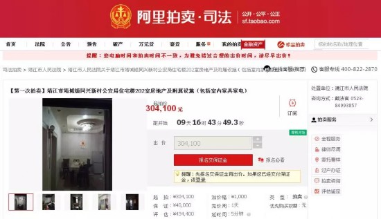 评估价43.44万元,起拍价 30.41万元,保证金4万元,增价幅度1000元。