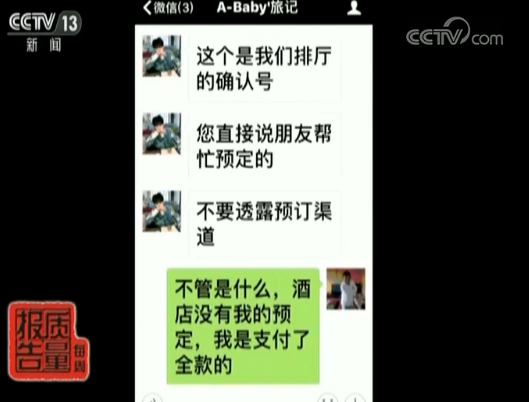 然后,画面就更鬼鬼祟祟了。对方要求张先生不许说自己是网上订的票,“是朋友帮订的”;第二天就必须退房;再然后对方让他绕开酒店前台登记,由一个澳门人直接给了门卡。总之,张先生一家的春节在各种折腾中度过。之后张先生开始投诉去哪儿,但足足半年之后还是一笔糊涂账。