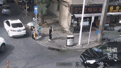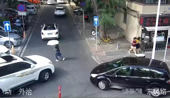 丰田车女司机周某当时正准备左转进入东风里街,突然发现车头位置有一把伞从右往左倒了下去,觉得有些不对劲,于是连忙踩刹车。