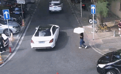 2018年5月25日下午3点30分,女子陈某打伞走在珠海东风路边的人行道上,前方两三米处有几个行人刚过了马路,紧随其后的陈某,也准备跟着他们穿过东风里街。当天天气很好,能见度不低,路上的车辆车速都不快,路上的行人也很少,但谁也没想到,危险正悄悄靠近陈某。
