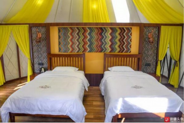 “度假村被褥一客一换,24小时热水,有干净的卫生间,还有一次可容纳300人同时就餐娱乐的大型宴会厅、大型KTV、篝火晚会等娱乐项目。”巴音布鲁克景区管委会主任朱玉梅说,景区内外562顶牧家乐蒙古包可同时容纳5600多名游客居住。