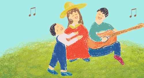 “我们的家乡,在希望的田野上,炊烟在新建的住房上飘荡,小河在美丽的村庄旁流淌。