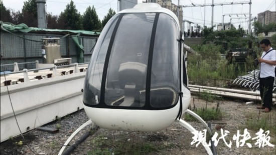 停在执行局院子里等待拍卖的直升飞机。现代快报 图