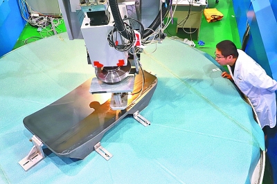 研究人员在观察加工中的碳化硅反射镜 张译心摄/光明图片