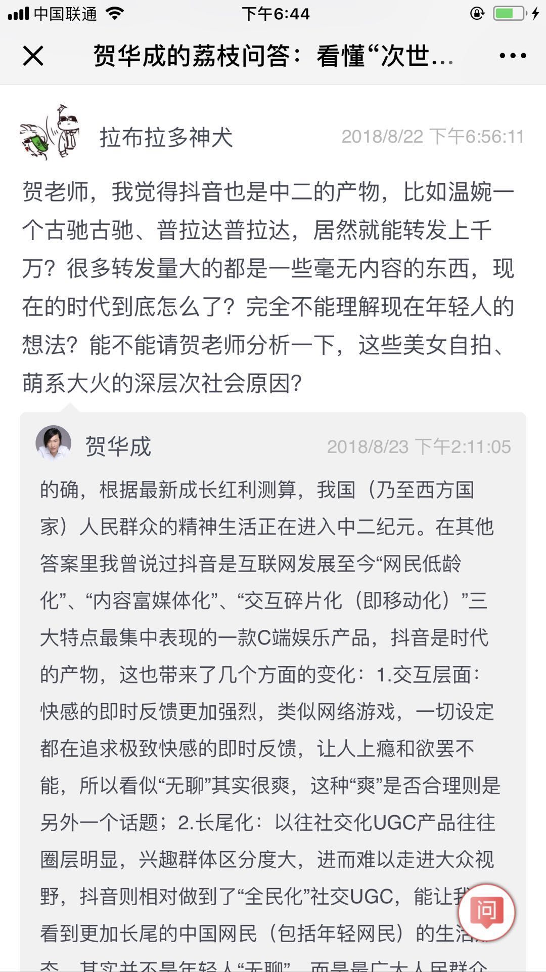 8月20日上线的荔枝新闻全新知识分享平台“荔枝问答”版块邀请了12位专家,分别来自军事、财经、教育、文化、医疗等领域……其中有一位相当独特,专门研究95后和二次元,他就是次世代经济研究所发起人贺华成,人称“95后研究第一人”!问答入口请戳>>>