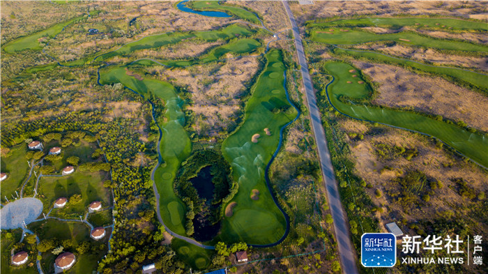 ↑这是位于库布其沙漠中的七星湖景区(2018年7月11日无人机拍摄)。在中国,几代人的奋斗成功实现库布其、塞罕坝等“人进沙退”,这样的成功范例让“一带一路”的伙伴们倍加重视中国的防沙治沙技术和经验。新华社记者 彭源 摄