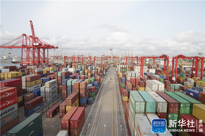 ↑这是2018年8月2日在斯里兰卡科伦坡国际集装箱码头拍摄的集装箱和龙门吊。新华社记者 朱瑞卿 摄