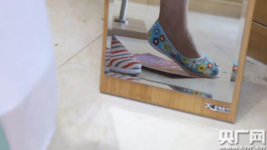 汪莉在上反上鞋。(央广网记者 李帅 摄)