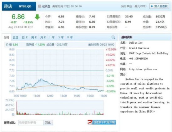 周四收盘,趣店股价下跌0.87美元,收报6.86美元,跌幅达11.25%。