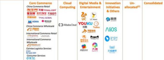 阿里的核心电商业务囊括了我们最常听到的那些业务——淘宝网、天猫、聚划算、农村淘宝、天猫超市、阿里妈妈、天猫国际、盒马鲜生、银泰商业、饿了么等。它们是阿里增长的主要牵引力。