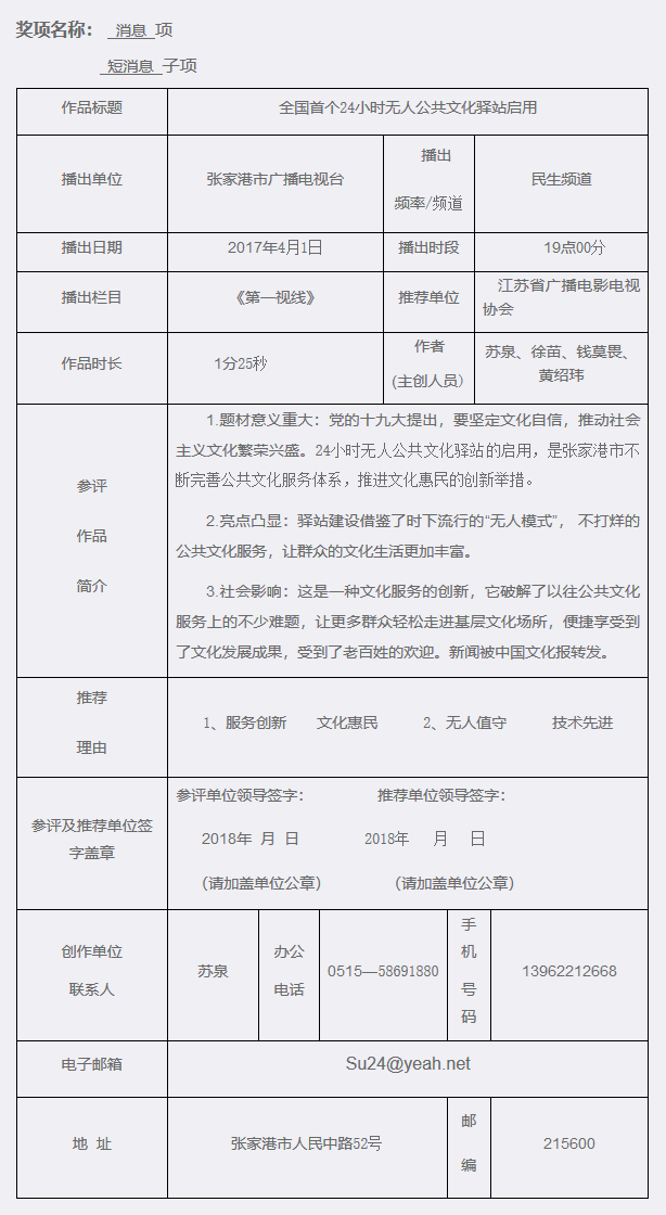 注:此表由参评单位填写,节目文字稿另附。