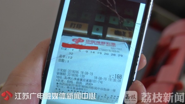 刘先生经营的福彩站在南京市高淳区淳溪镇官溪路。8月19日,一位彩民通过微信请他代买了一张双色球彩票。福彩站负责人刘先生回忆道:“我发号码给他推荐的,是168元一张的复式票,然后他当时没有把钱给我,我就帮他把这个票打出来了。”