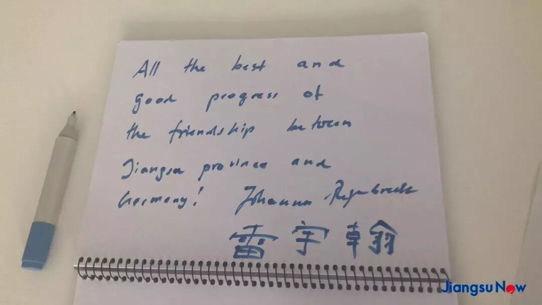 在结束新华日报全媒体国际传播部记者&Now君的专访前,雷宇翰欣然提笔写下对江苏与德国今后的发展的深情寄语:“愿江苏与德国之间的友谊有更好的进展!”