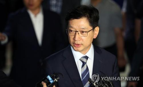 资料图:网络舆论操纵案涉案人、韩国庆尚南道知事金庆洙在其拘捕令被驳回后走出首尔拘留所。(图片来源:韩联社)
