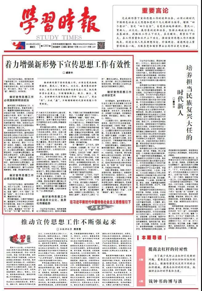 新形势下,宣传思想工作面临“四个前所未有”:统一思想、凝聚力量任务之艰巨前所未有,增强国际话语权、提升国家文化软实力任务之艰巨前所未有,建设具有强大凝聚力和引领力的社会主义意识形态任务之艰巨前所未有,改进创新宣传思想工作任务之艰巨前所未有。越是面临艰巨任务,越是需要敢于担当、勇于作为。