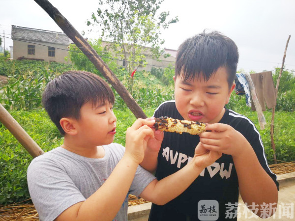 朱峰和爷爷见到大家的到来,欣喜地到自家田地里摘来平时舍不得吃的玉米给孩子们一起烤了吃,家长陈香和管国华到河里拎了一桶又一桶洗菜用的水。