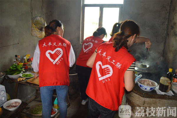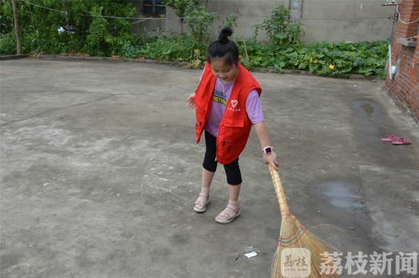 家长和孩子们带来了当天中午的菜肴、大米、烧菜的佐料、书包、学习用品、水果、零食等。大家一到朱峰家就开始忙活起来,孩子们主动拿起扫帚帮忙打扫场地,家长们配合打扫屋子。
