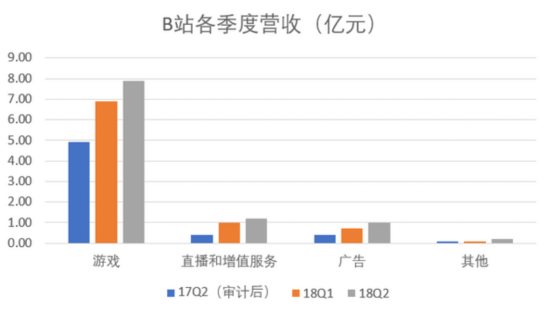 第二季度广告、视频直播和增值服务的增长,为B站总营收的增长贡献了力量。