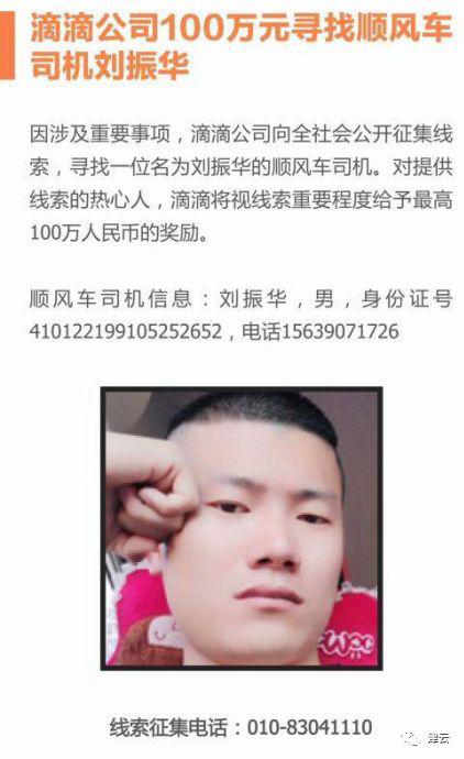 空姐遇害案发生后,滴滴迅速悬赏100万元,征集寻找嫌疑人刘某华的线索,这一举动为当时极其被动的滴滴带来了很多积极评价,这至少代表了滴滴协助破案的决心。公告中称,滴滴向全社会公开征集线索寻找一位名叫刘某华的顺风车司机,并视线索重要程度给与最高100万的奖励。