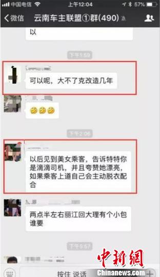 图为网民在微信群内就浙江温州女孩乘坐滴滴顺风车遇害案件发表侮辱性言论。 昆明市公安局供图