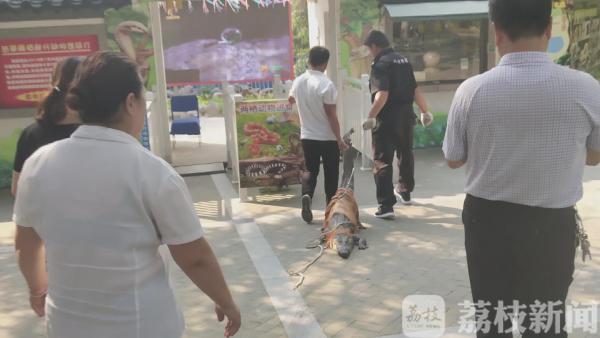 25日中午,民警将鳄鱼送到徐州市野生动物救助中心,暂时由徐州市野生动物保护中心代养。