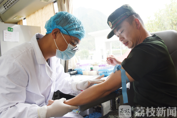 荔枝新闻讯(记者/田柳 通讯员/石乃闯 王建)“我献300毫升,”“我献400毫升。”铿锵有力的声音此起彼伏。8月26日上午,阿坝州血液中心献血车驶入武警阿坝支队机关大院时,该支队官兵们早已聚集于此,他们纷纷撸起袖子献血,为第二故乡献上了无私大爱,有效缓解了当地临床用血的紧张局面。