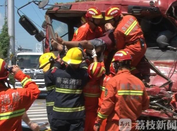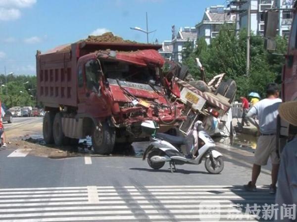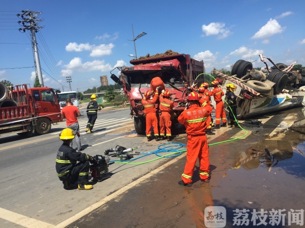 今天(8月28日)中午11点左右,在南京江宁区竹山路一丁字路口,发生了一起交通事故。一辆渣土车撞翻一辆洒水车,渣土车司机被困,而洒水车司机自行从车里爬出,没有受伤。