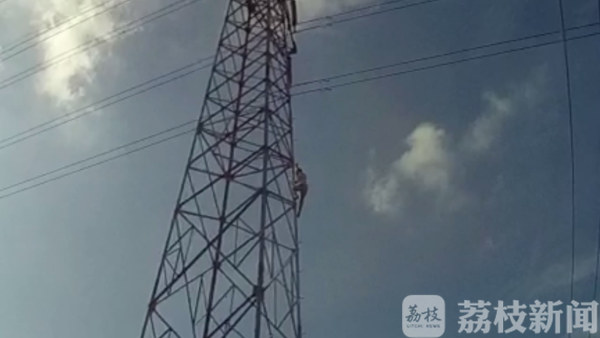 8月28日上午9点多钟,盐城边防支队王港边防派出所接110指令:原大丰盐场南侧的一个养鱼塘口有一个妇女爬上了高压电铁塔。接警后王港边防派出所立即派出两名民警前往现场处置,在鱼塘边的一个大约60米高的铁塔的顶端一名妇女正在吵闹。
