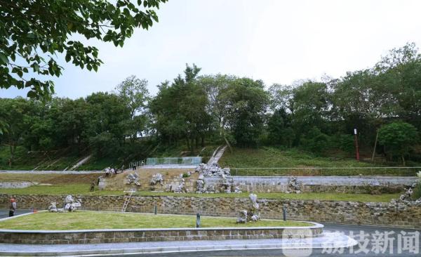 学校对面为赤石矶登城口,上、中、下三条石径路层次分明、错落有致,可直达城墙,登城口处绿植与假山完美融合,呈现原始山体景色,自然并富有野趣。