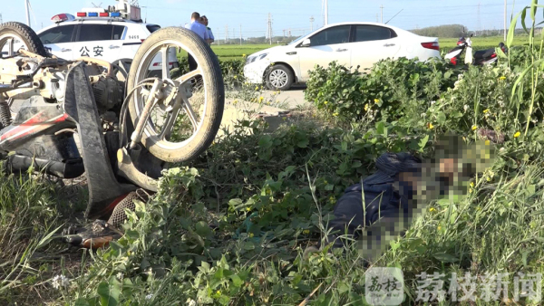 8月30日早上5点多钟,射阳县临港工业区居民张才志报警称:在农牧公司二管区大渠路的一处十字路口,一辆二轮摩托车倒立在路边,一名男子躺在旁边,可能已经死亡。