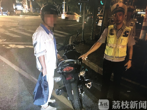 8月22日晚上9点50分,民警在浦珠路夜查整治时,拦下一辆全新的无牌摩托车。驾车男子说,自己车辆车是刚买回来的,但不是南京户口开不了临牌,民警发现,车辆保险也没有买。