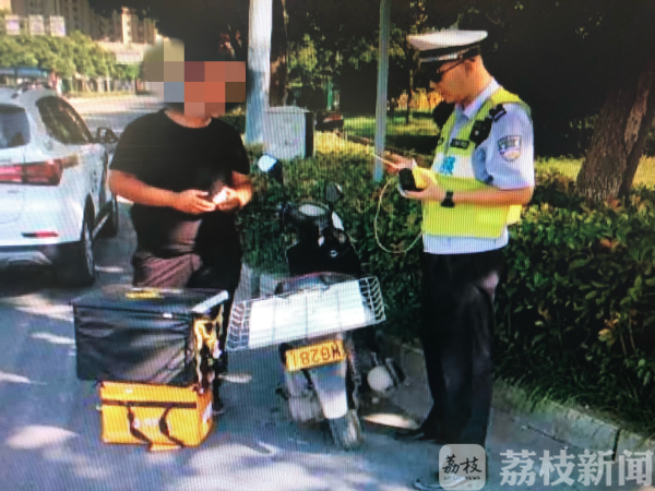 8月23日下午5点,南京江北新区公安分局交警支队在柳州北路整治过往车辆交通违法行为时,拦下一辆送外卖的摩托车,这辆车仅悬挂了小牌照。驾车的外卖小哥称,牌照是在网上买的。民警要求提供驾驶证,该男子称自己没带, 随后拿出一张身份证。