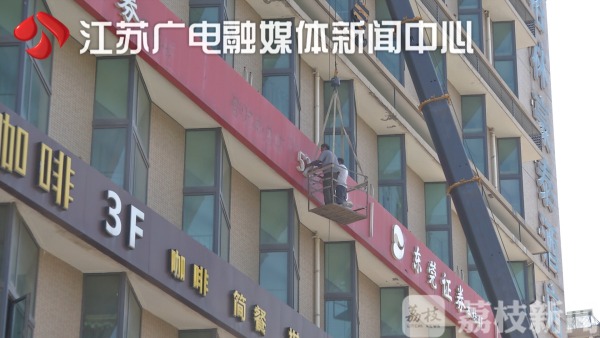 在多次劝阻无效之后,城管队员今天调来了两台大型吊机,将40米高空的这两处广告牌进行强拆。剩下的两处广告牌,在确保安全的前提下予以保留。根据相关规定,店招广告牌的信息必须与商家营业执照上的信息保持一致,但很多商家为了吸引客源,违规增加了其他内容。按规定只允许保留一个标识和店名,至于设计的经营内容,包括联系电话之类的,也要按照规定把它一并进行清除。不过允许店家放个二维码,大家一扫,店家所有信息全部都有了。