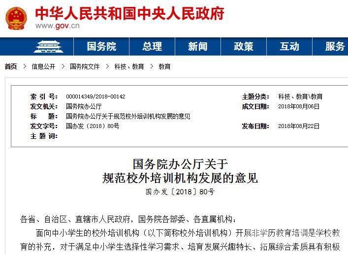 国务院办公厅印发《关于规范校外培训机构发展的意见》,9月起,校外培训机构结束时间不得晚于晚上8点半,不得留作业,严禁组织举办中小学生学科类等级考试、竞赛及进行排名等,还要求校外培训机构不得一次收取时间跨度超过3个月的费用。不过,家长们表示执行效果有待观察:“因为他一期,比如秋季班,肯定是超过三个月的。这种费用不可能说我上一次课交一次费,而且还有一点,我作为一个家长,可能报两期课有优惠,一个暑假班再加一个秋季班,这一搭的话将近优惠四五百块钱,作为家长肯定愿意去这么(做)。”