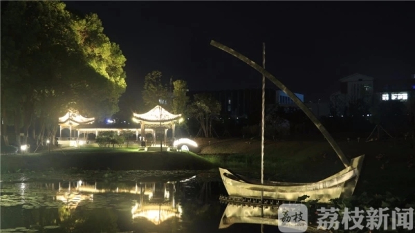 “来来来,快来看,这里的喷泉非常漂亮!”只见湖面上有一只帆船造型的喷泉,潺潺的流水声,配合夜间的灯光,显得更加的璀璨夺目。这片湖正是状元坊文化公园(原西苑公园)内的湖。连日来,一到晚上,状元坊文化公园就开始热闹起来,这里灯光璀璨,景色如画,成了众多市民拍照、玩耍的聚集地。