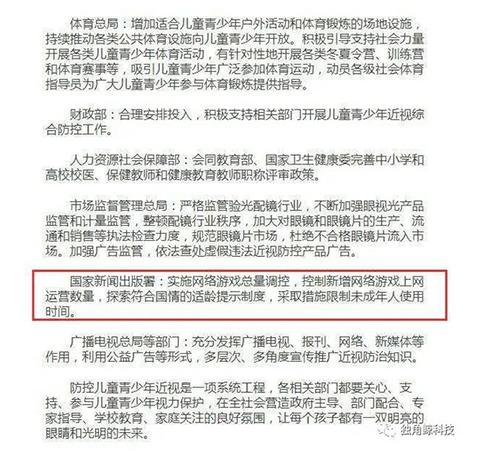 《实施方案》提出,到2030年,实现全国儿童青少年新发近视率明显下降,儿童青少年视力健康整体水平显著提升。为此,教育部等八部门将采取联合行动,其中,国家新闻出版署表示将对网络游戏实施总量调控,控制新增网络游戏上网运营数量,探索符合国情的适龄提示制度,采取措施限制未成年人使用时间。