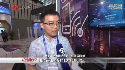 南京移动网络部网络规划工程师司亚雄告诉记者,5G具有更高的带宽。相当于是4G的10到100倍。比如说我们这个360度的视频回传,它需要很高的数据带宽,在4G网络里面是没有办法支撑这种大数据回传的。