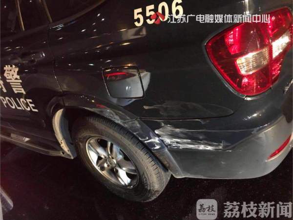 2018年8月30日晚上21时40分许,南京市公安局特警支队武装巡逻一大队民警在雨花区江南路进行清查行动。只听砰的一声,一辆白色比亚迪轿车撞上了停在路边的特警巡逻车。