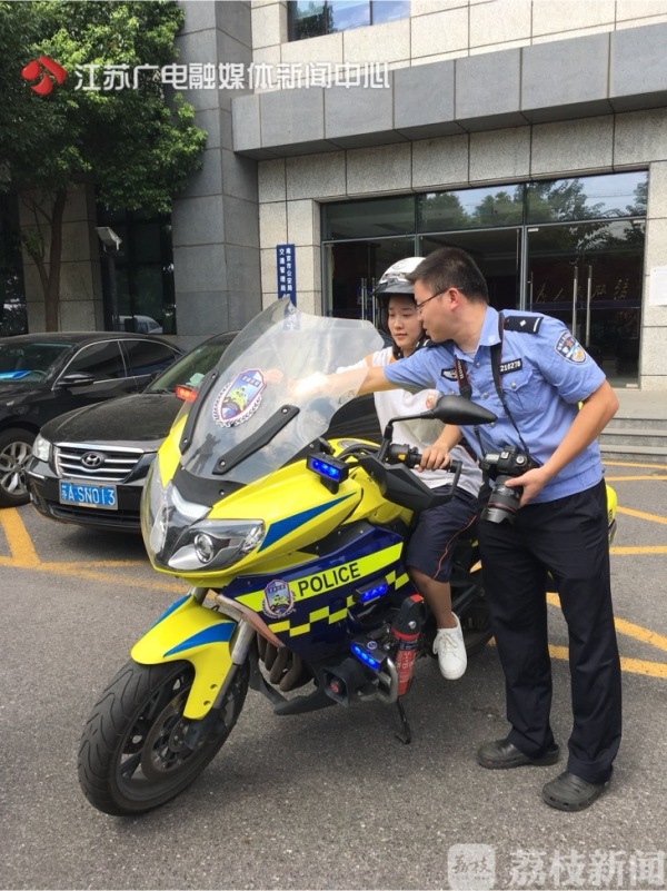这是鲁蕾第一次来到这里,对于“南京铁骑”这个威武的团体,女孩十分崇拜。今天,交警叔叔们决定让她亲身体验一下南京铁骑的工作。骑上这辆高大威武的警用摩托车,女孩既兴奋又害怕,对于警车的构造,她也十分好奇。