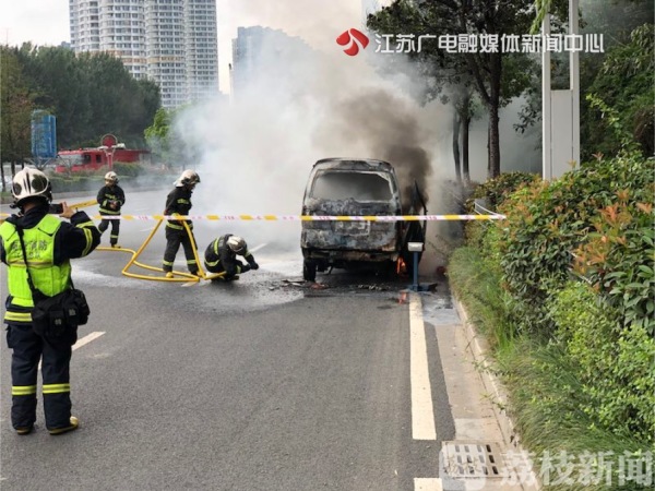 2018年9月1日11时10分左右,南京市公安局指挥中心接群众报警,在扬子江大道奥体大街到河西大街段有辆面包车自燃,车上疑似有液化气罐。警情就是命令,正在附近巡逻的市公安局特警支队机动武装巡逻二大队民警迅速赶往现场处置。