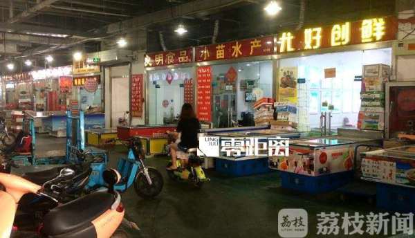 这张红色的通知是大生冷链物流公司于8月23日张贴在自家市场门前的。通知的内容上写明因为不具备水产经营条件,相关手续不完善,所以请各个经营户不要进场经营。然而,知情人告诉记者,就在当天晚上,这家冷链公司内摆满了各种卖水产品的摊位。