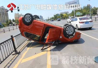 宿迁市交警支队事故处理大队民警周旭东表示:“经过现场勘查,两辆车事故受损并不严重,但是这个红色轿车却四轮朝天,翻倒在地,这让我们很不理解。”