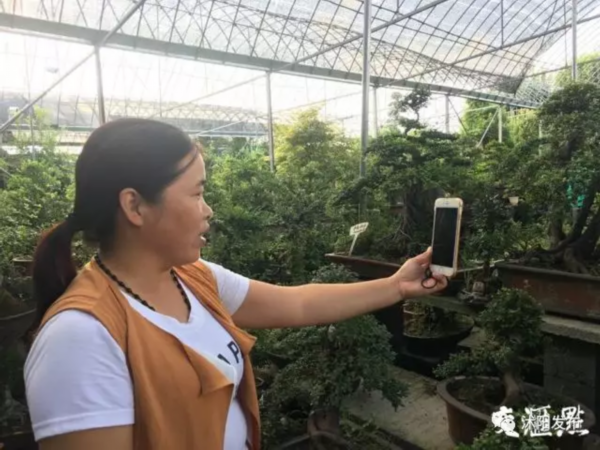 就在姜爱花家的隔壁,55岁的王秀平也在直播。“我就是跟姜爱花学的,平时她搞直播,我就经常去看看,不懂的,就问问她,二三个月就出师了。”王秀平说,“直播很实在,不能玩虚的。直播以来,平均每天销售盆景2000元以上。”