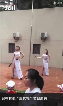据新京报“我们视频”显示,在该幼儿园的开学典礼上,有女性在舞台上表演钢管舞,穿着暴露、舞姿撩人,台下孩子们有的边看边打闹,还有家长牵着孩子大步离开,背景音中,有人抱怨:“这跳的都是什么呀。”