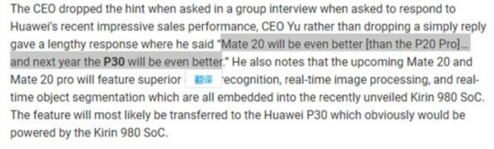 按照华为的惯例,“P30”预计会在明年春季(MWC2019?)推出,它同样会搭载麒麟980芯片,但与Mate 20不同的是,除了继承,其在外形设计、摄影录像方面有着更极致的追求。