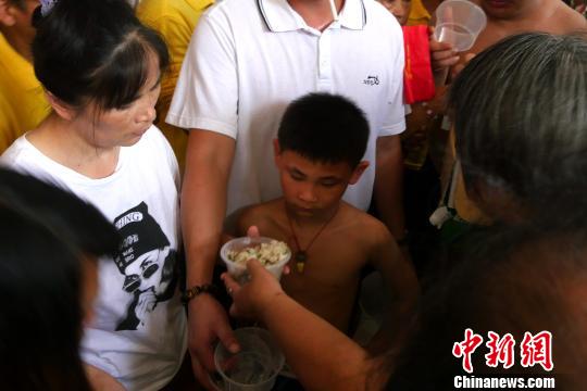 5日中午12时许,位于谷饶镇新兴社区的安置点飘出阵阵饭香。该安置点的千余名受灾民众有序地排着长队,当地政府工作人员正在为他们派发炒饭。