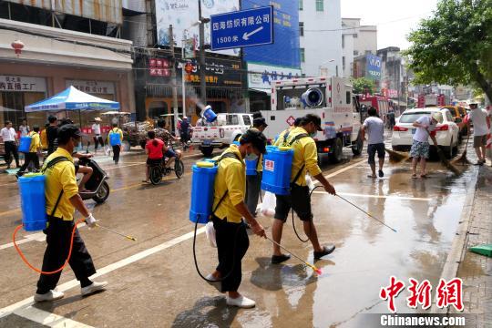 在谷饶镇镇区的多个路段,记者看到,多数商户已重新开门营业。街道上,当地多个部门正协作开展灾后清理工作:城管部门清扫垃圾后,消防水车用高压水枪清洗路面,卫生防疫部门跟进喷洒消毒液。