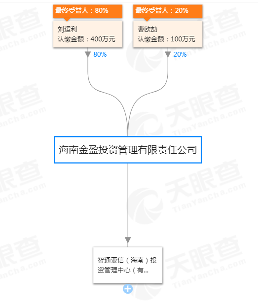 令火山君侧目的是,天眼查信息显示,曹欧劼还持有20%的海南金盈投资管理有限责任公司的出资,另一位是刘运利持有80%的海南金盈的出资。